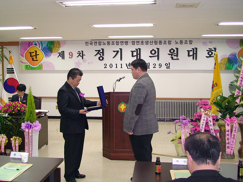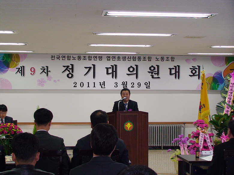 2011³â 3¿ù 29ÀÏ °³ÃÖµÈ ¿±¿¬ÃÊ»ý»êÇùµ¿Á¶ÇÕ³ëÁ¶ Á¦9Â÷ Á¤±â´ëÀÇ¿ø´ëȸ Çà»çÀÔ´Ï´Ù.