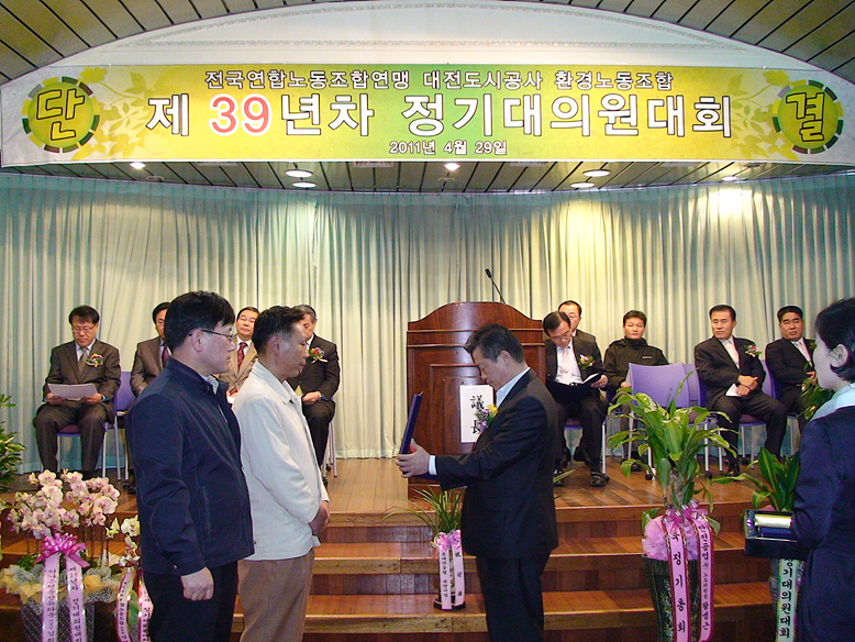 2011³â 4¿ù 29ÀÏ °³ÃÖµÈ ´ëÀüµµ½Ã°ø»çȯ°æ³ëµ¿Á¶ÇÕ Á¤±â´ëÀÇ¿øÈ¸ Çà»çÀÔ´Ï´Ù.