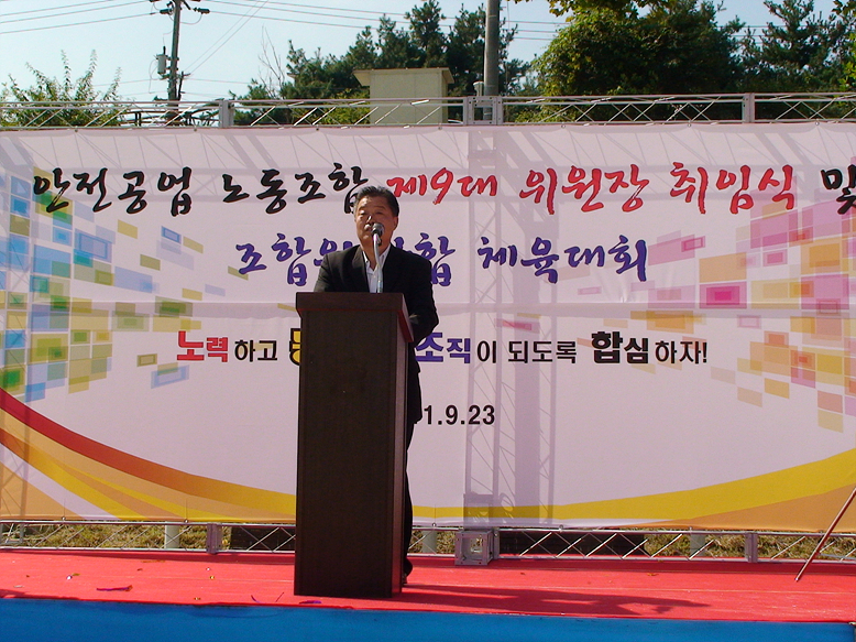 ¾ÈÀü°ø¾÷³ëµ¿Á¶ÇÕ Á¦9´ë À§¿øÀå ÃëÀÓ½Ä ¹× Á¶ÇÕ¿ø ´ÜÇÕ Ã¼À°´ëȸ Çà»çÀÔ´Ï´Ù.