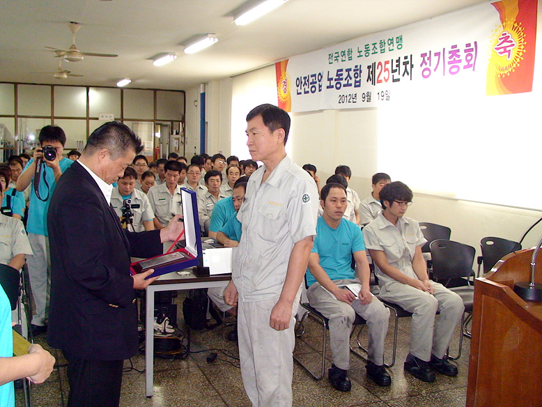 2012³â 9¿ù 19ÀÏ °³ÃÖµÈ ¾ÈÀü°ø¾÷³ëµ¿Á¶ÇÕ Á¦25³âÂ÷ Á¤±âÃÑȸ Çà»çÀÔ´Ï´Ù.