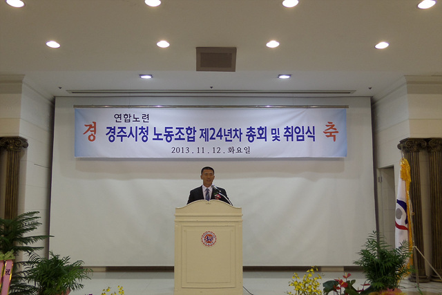 2013³â 11¿ù 12ÀÏÀÚ °æÁÖ½Ãû³ëµ¿Á¶ÇÕ Á¦24³âÂ÷ ÃÑȸ ¹× ÃëÀÓ½Ä Çà»ç°¡ °³ÃֵǾú½À´Ï´Ù.