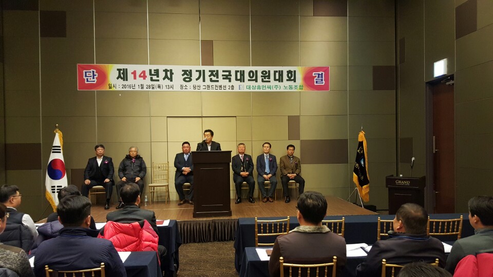 2016³â 1¿ù 28ÀÏÀÚ ´ë»óÈÞ¸Õ¾¾(ÁÖ)³ëµ¿Á¶ÇÕ Á¦14³âÂ÷ Á¤±âÀü±¹´ëÀÇ¿ø´ëȸ°¡ °³ÃֵǾú½À´Ï´Ù.