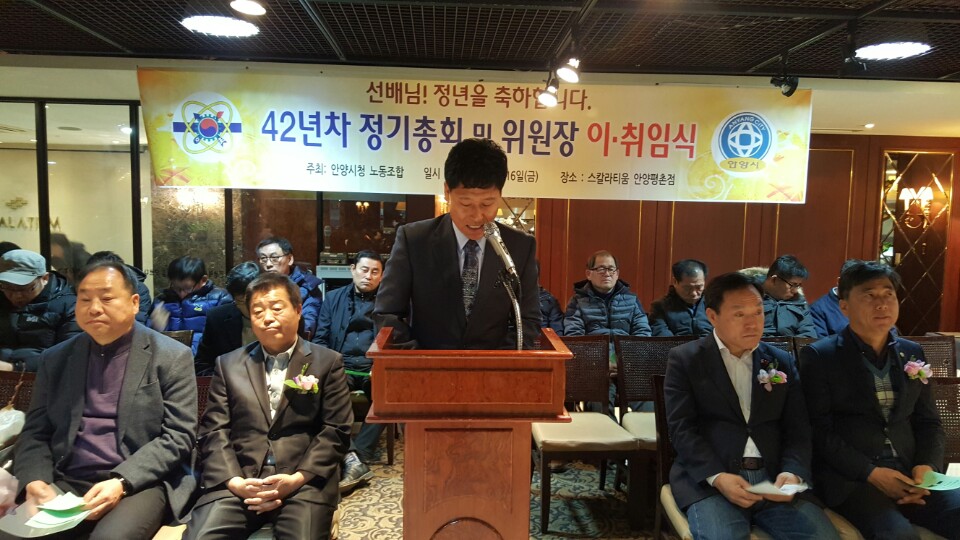 2016³â 12¿ù 16ÀÏ ¾È¾ç½Ãû³ëµ¿Á¶ÇÕ Á¦42³âÂ÷ Á¤±âÃÑȸ ¹× ÀÌÃëÀÓ½ÄÀÌ °³ÃֵǾú½À´Ï´Ù.