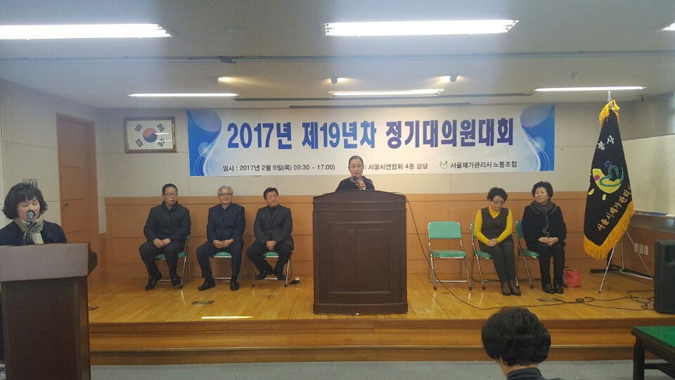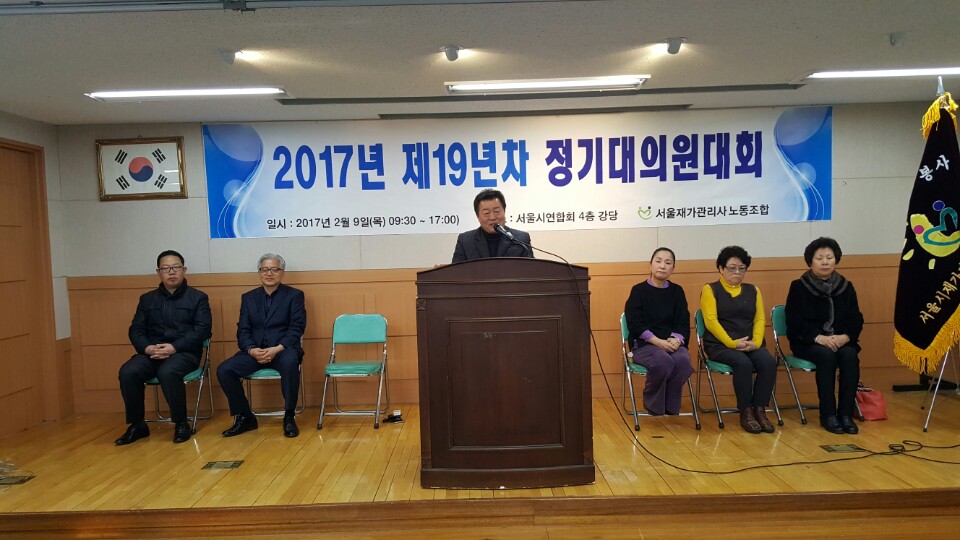 2017³â 2¿ù 9ÀÏ ¼¿ïÀç°¡°ü¸®»ç³ëµ¿Á¶ÇÕ Á¦19³âÂ÷ Á¤±â´ëÀÇ¿ø´ëȸ°¡ °³ÃֵǾú½À´Ï´Ù.