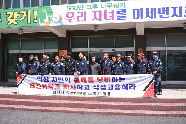 ±Ý°°ø»ç³ëµ¿Á¶ÇÕ 3¿ù 18ÀϺÎÅÍ ÀÍ»ê½Ãû ¾Õ¿¡¼ ÀÍ»ê½ÃÀÇ Ã»¼Ò´ëÇà¾÷ À§Å¹ ±ÝÁö¿Í Á÷Á¢ °í¿ë ÀïÃ븦 À§ÇÑ ÅõÀïÀ» Àü°³Çϰí ÀÖ½À´Ï´Ù. Áýȸ´Â ÆòÀÏ ¸ÅÀÏ ¿ÀÈÄ 4½ÃºÎÅÍ 6½Ã±îÁö ÁøÇàµÇ¸ç, Áýȸ¿¡´Â Çѱ¹³ëÃÑ °ü°èÀÚ¿Í ±Ý°°ø»ç ³ëÁ¶¿ø ¼ö½Ê¸íÀÌ Âü¿©ÇØ ¸ñ¼Ò¸®¸¦ ³ôÀ̰í ÀÖ½À´Ï´Ù.