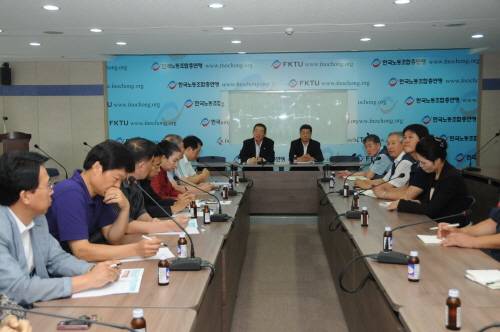 À̳¯ ¿ÀÀü 11½Ã Çѱ¹³ëÃÑ 9Ãþ ¼¼¹Ì³ª½Ç¿¡¼ ÀÌ´ë±Ô ³ë·ÃÀ§¿øÀåÀ» ºñ·ÔÇÑ Áß¾ÓÁýÇàÀ§¿ø 15¸íÀÌ Âü¼®Çϰí, ÀÌ¿ëµæ À§¿øÀåÀ» Æ÷ÇÔÇÑ ÇÑ °¡¿îµ¥ °¡Áø ³ëÃÑÀ§¿øÀå°úÀÇ °£´ãȸ¿¡¼´Â Çѱ¹³ëÃÑ ÁöµµºÎ Ãâ¹ü 4°³¿ù °£ÀÇ ÅõÀï°úÁ¤¿¡ ´ëÇÑ Æò°¡¿Í ÇÔ²² ¿¬ÇÕ³ë·ÃÀÌ ¾È°í ÀÖ´Â Çö¾È¹®Á¦ µîÀÌ ¾ð±ÞµÆ´Ù.
